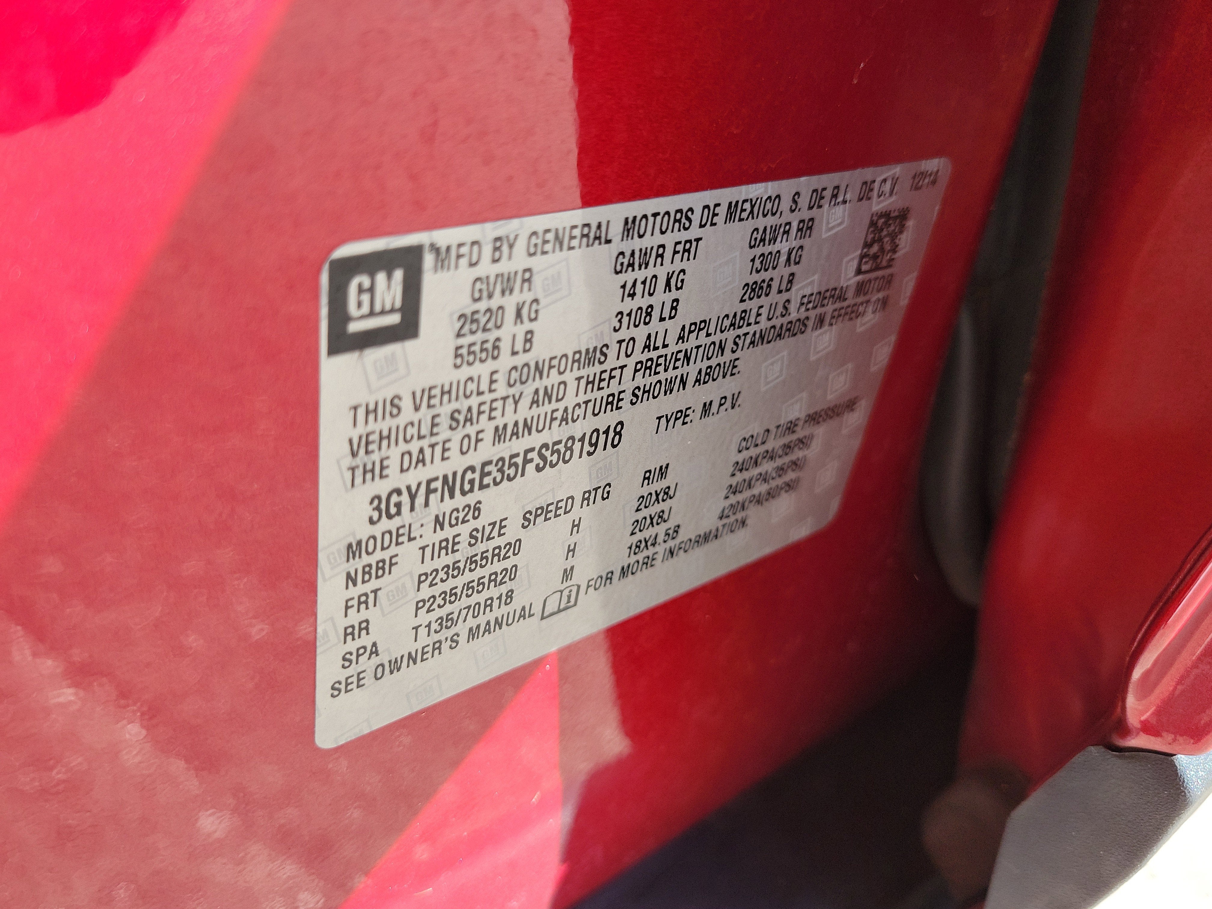 - Front Tire Size: P235/55HR20