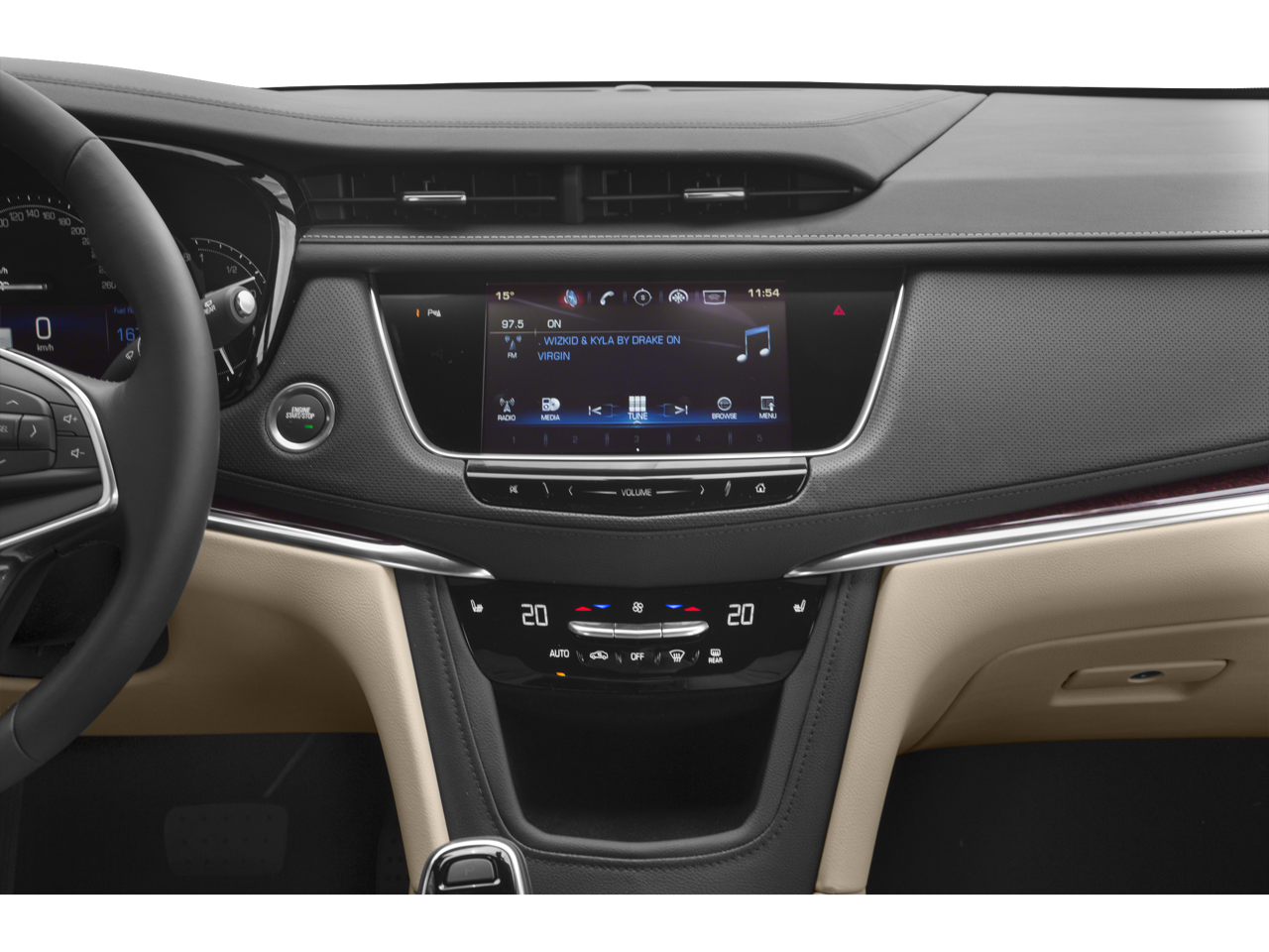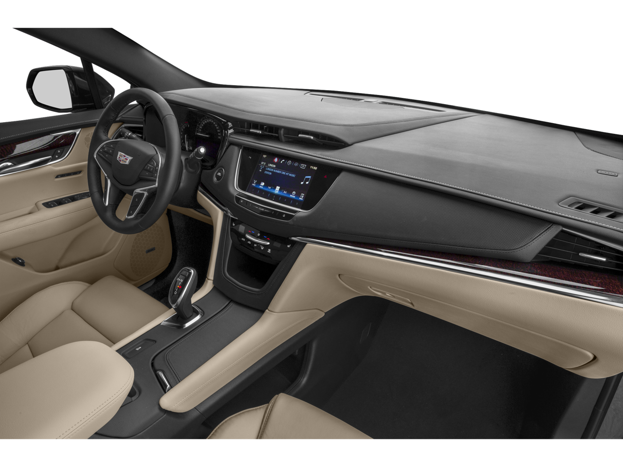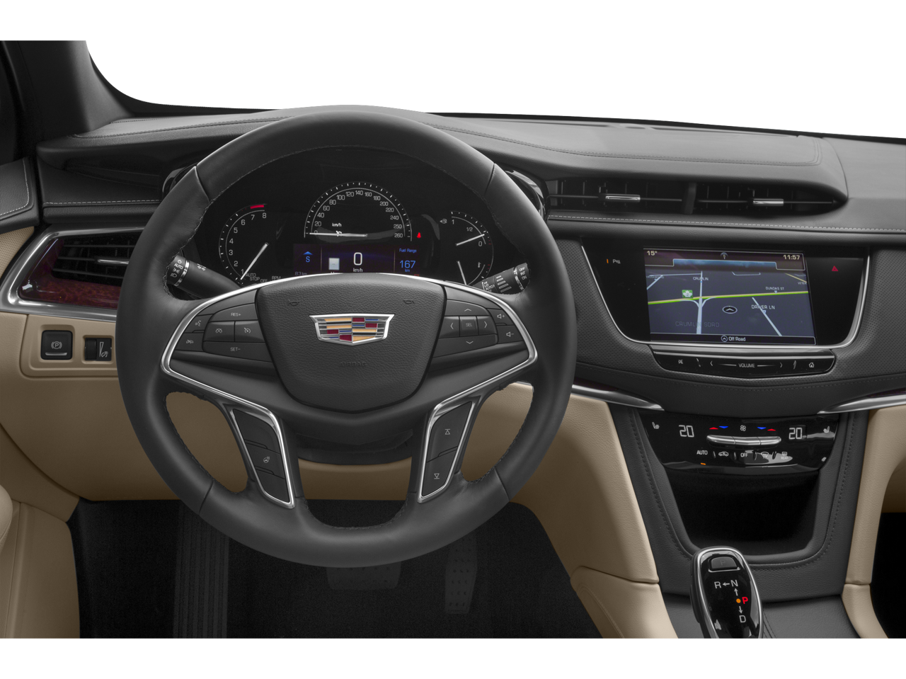 - Cadillac user experience with embedded navigation, AM/FM stereo with 8" diagonal color information display, four USB ports, two auxiliary power outlets, auxiliary input jack, Natural Voice Recognition, Phone Integration for Apple CarPlay and Android Auto capability for compatible phone, Connected Apps and Teen Driver