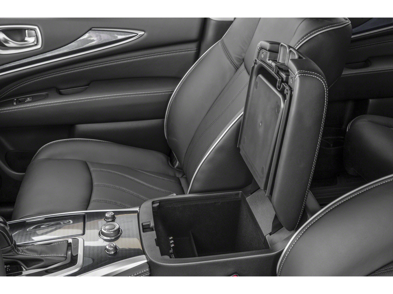 - Radio: AM/FM/CD/MP3 w/Bose Premium Audio System -inc: 13 speakers, Radio Data System (RDS), speed-sensitive volume control, 8" touch screen, illuminated steering wheel-mounted audio controls, INFINITI InTouch system w/HD radio, SiriusXM radio w/3-month complimentary trial, SiriusXM Travel Link w/4-year complimentary trial access to weather, fuel prices, stock prices, sports scores and movie listings, voice recognition for audio, Bluetooth® and vehicle information, Bluetooth® hands-free phone system and audio streaming, hands-free text messaging assistant, 2 USB ports for compatible devices for audio streaming, 6 USB charging ports: 1st and 2nd row, illuminated: 1x type A, 1x type C and 3rd row: 2x type A and auxiliary audio/video input jacks in front center console