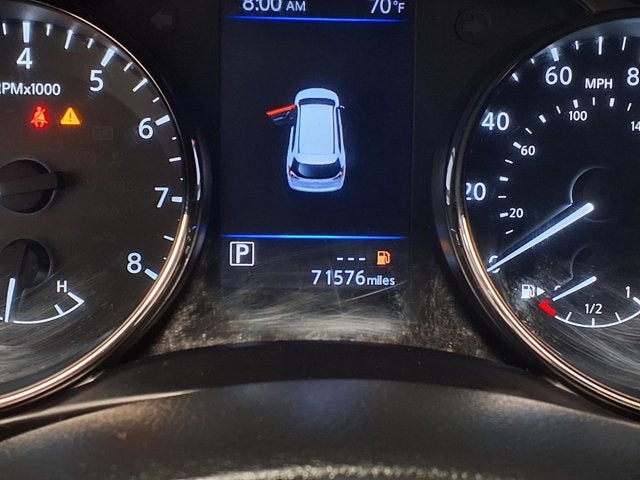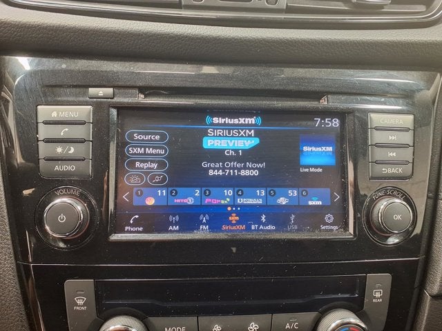 This vehicle comes equipped with: AWD, 17 Aluminum Alloy Wheels, 4-Wheel Disc Brakes, 6 Speakers, 6.386 Axle Ratio, ABS brakes, Air Conditioning, Alloy wheels, AM/FM radio: SiriusXM, Anti-whiplash front head restraints, Auto High-beam Headlights, Automatic temperature control, Black Splash Guards (Set of 4), Blind Spot Warning, Brake assist, Bumpers: body-color, CD player, Cloth Seat Trim, Delay-off headlights, Driver door bin, Driver vanity mirror, Dual front impact airbags, Dual front side impact airbags, Electronic Stability Control, First Aid Kit, Floor Mats & 2-PC Cargo Area Protector, Four wheel independent suspension, Front anti-roll bar, Front Bucket Seats, Front Center Armrest w/Storage, Front dual zone A/C, Front reading lights, Fully automatic headlights, Heated door mirrors, Heated Front Bucket Seats, Heated front seats, Illuminated entry, Lane Departure Warning System, Leather Shift Knob, Low tire pressure warning, NissanConnect featuring Apple CarPlay and Android Auto, Occupant sensing airbag, Outside temperature display, Overhead airbag, Overhead console, Panic alarm, Passenger door bin, Passenger vanity mirror, Power door mirrors, Power driver seat, Power Liftgate, Power steering, Power windows, Radio data system, Radio: AM/FM/CD/AUX, Radio: AM/FM/CD/AUX NissanConnect w/Navigation, Rear anti-roll bar, Rear Parking Sensors, Rear seat center armrest, Rear window defroster, Rear window wiper, Remote keyless entry, Roof rack: rails only, Security system, Speed control, Speed-sensing steering, Split folding rear seat, Spoiler, Steering wheel mounted audio controls, Tachometer, Telescoping steering wheel, Tilt steering wheel, Traction control, Trip computer, Turn signal indicator mirrors, and Variably intermittent wipers.