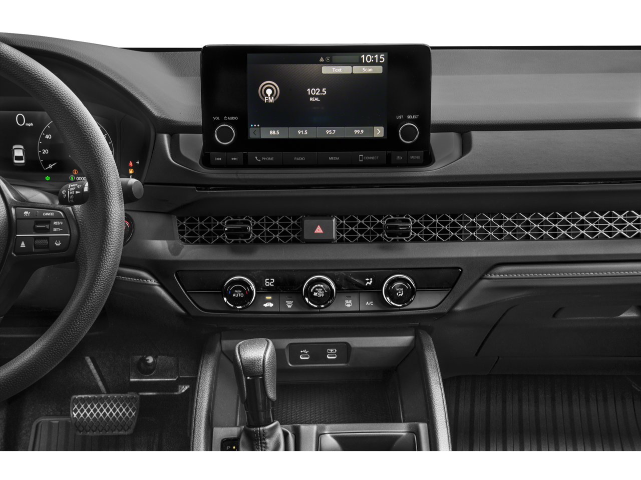 - Radio: 160-Watt AM/FM Audio System -inc: 4 speakers, 7" color touchscreen, wired Apple CarPlay and Android Auto compatibility, Bluetooth® streaming audio, 1 USB-C 3.0A smartphone/audio interface, 1 USB-C 3.0A charging port, wi-fi hotspot capability and HondaLink subscription services