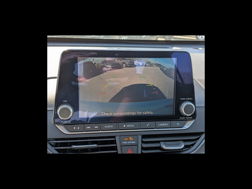 This vehicle comes equipped with : CVT with Xtronic, 17" Alloy Wheels, 4-Wheel Disc Brakes, 6 Speakers, ABS brakes, Air Conditioning, Alloy wheels, AM/FM radio: SiriusXM, Auto High-beam Headlights, Blind Spot Warning, Brake assist, Bumpers: body-color, Cloth Seat Trim, Delay-off headlights, Driver door bin, Driver vanity mirror, Dual front impact airbags, Dual front side impact airbags, Electronic Stability Control, Four wheel independent suspension, Front anti-roll bar, Front Bucket Seats, Front Center Armrest, Front reading lights, Fully automatic headlights, Illuminated entry, Knee airbag, Low tire pressure warning, NissanConnect featuring Apple CarPlay, Occupant sensing airbag, Outside temperature display, Overhead airbag, Overhead console, Panic alarm, Passenger door bin, Passenger vanity mirror, Power door mirrors, Power driver seat, Power steering, Power windows, Radio data system, Radio: AM/FM Audio System, Rear anti-roll bar, Rear Parking Sensors, Rear reading lights, Rear seat center armrest, Rear side impact airbag, Rear window defroster, Remote keyless entry, Security system, Speed control, Speed-sensing steering, Speed-Sensitive Wipers, Split folding rear seat, Steering wheel mounted audio controls, Tachometer, Telescoping steering wheel, Tilt steering wheel, Traction control, Trip computer, and Variably intermittent wipers.