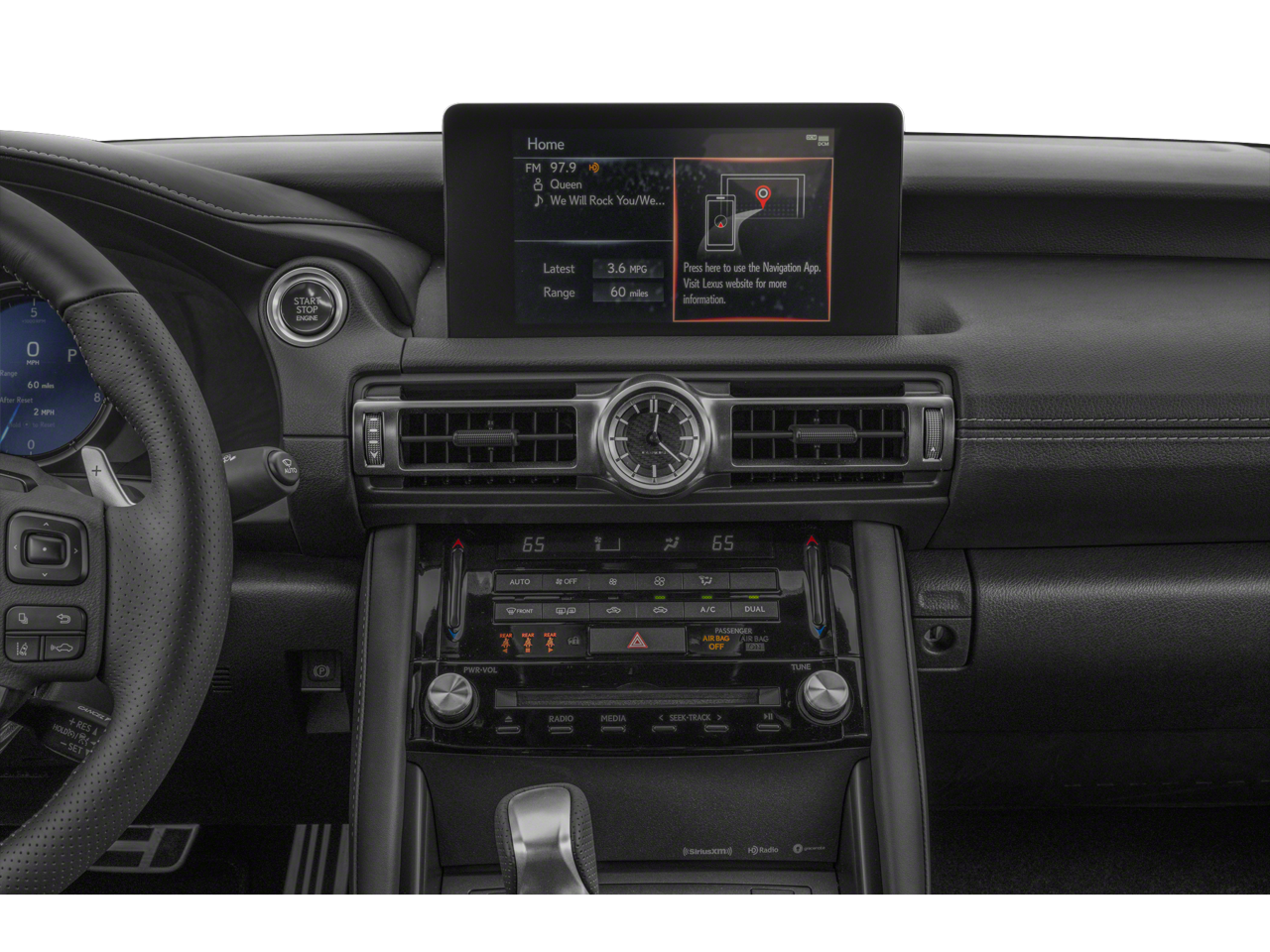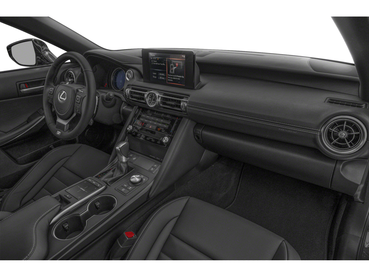 This Vehicle is nicely equipped with the following features: Accessory Package 2 (Cargo Net, Carpet Trunk Mat, Key Gloves, Rear Bumper Applique, and Wheel Locks), Black Premium Synthetic, 10 Speakers, 4-Wheel Disc Brakes, ABS brakes, Air Conditioning, Alloy wheels, AM/FM radio: SiriusXM, Apple CarPlay/Android Auto, Auto High-beam Headlights, Auto-dimming door mirrors, Auto-dimming Rear-View mirror, Automatic temperature control, Brake assist, Bumpers: body-color, CD player, Compass, Delay-off headlights, Driver door bin, Driver vanity mirror, Dual front impact airbags, Dual front side impact airbags, Electronic Stability Control, Emergency communication system: Safety Connect (3-year trial), Exterior Parking Camera Rear, Four wheel independent suspension, Front anti-roll bar, Front Bucket Seats, Front Center Armrest, Front dual zone A/C, Front fog lights, Front reading lights, Fully automatic headlights, Garage door transmitter: HomeLink, Heated and Ventilated F SPORT Bolstered Seats, Heated door mirrors, Heated front seats, Heated steering wheel, Illuminated entry, Intuitive Park Assist with Rear Cross-Traffic Braking, Knee airbag, Leather Shift Knob, Leather steering wheel, Low tire pressure warning, Memory seat, Moonroof, NuLuxe Seat Trim, Occupant sensing airbag, Outside temperature display, Overhead airbag, Overhead console, Panic alarm, Passenger door bin, Passenger vanity mirror, Power door mirrors, Power driver seat, Power passenger seat, Power steering, Power windows, Radio data system, Radio: Lexus Multimedia System with 8.0" Touchscreen Display, Rain sensing wipers, Rear anti-roll bar, Rear reading lights, Rear seat center armrest, Rear side impact airbag, Rear window defroster, Remote keyless entry, Security system, Speed control, Speed-sensing steering, Speed-Sensitive Wipers, Split folding rear seat, Spoiler, Sport steering wheel, Steering wheel memory, Steering wheel mounted audio controls, Tachometer, Telescoping steering wheel, Tilt steering wheel, Traction control, Trip computer, Turn signal indicator mirrors, Variably intermittent wipers, Ventilated front seats, and Wheels: 19" Split-5-Spoke Alloy with Dark Metallic Finish. 20/28 City/Highway MPG