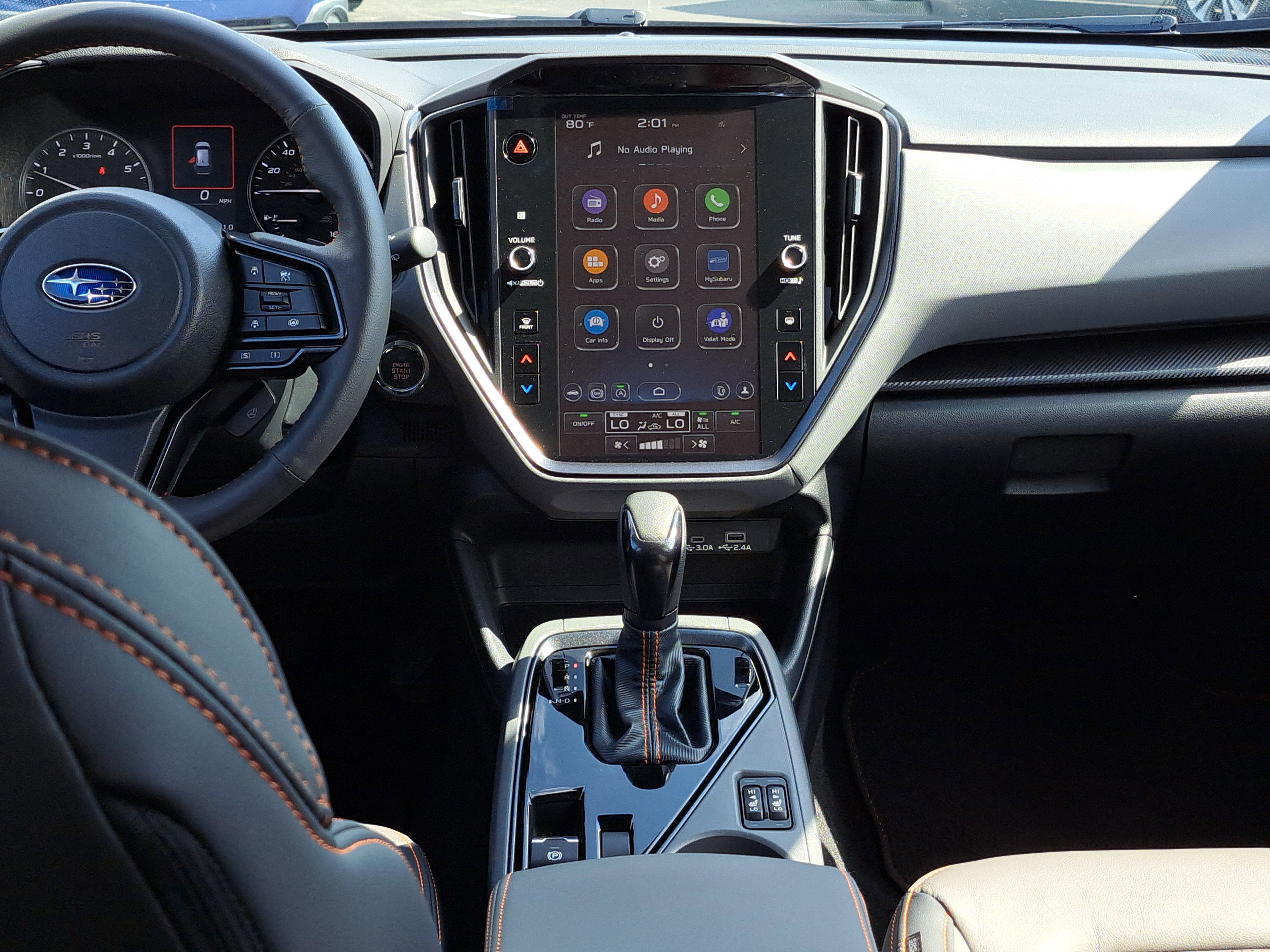 - Radio: Subaru 11.6" Multimedia Plus System -inc: AM/FM stereo, HD Radio, multi-touch gesture high resolution display screen, voice activated controls, Bluetooth® audio streaming and hands-free phone connectivity, Bluetooth® hands-free SMS text messaging connectivity, iPod control capability, smartphone integration: wired and wireless Android Auto w/full screen view and wireless Apple CarPlay w/full screen view, USB and Over The Air (OTA) audio system update, steering wheel audio system and Bluetooth® control switches, 6 speakers (2 dash panel tweeter, 2 front door and 2 rear door), illuminated 3.5mm auxiliary input jack, illuminated front USB A and C input/charge ports, connected services operation indicator, SOS emergency assistance: red SOS button and enhanced roadside assistance: blue i-button